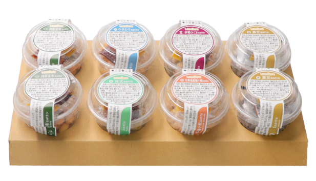 少しリッチな納豆をおしゃれな容器で色豆、小粒、大粒、極小粒など豊富な種類の納豆をお楽しみいただけます。